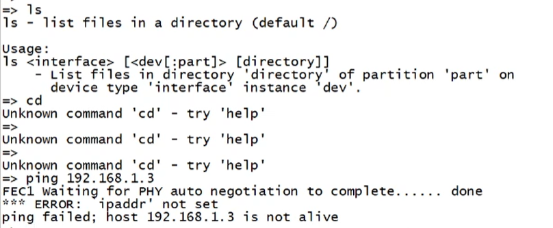 2,此时ls,cd等linux命令也行不通,因为这还只是启动程序,ping不通这是因为没有配置ip