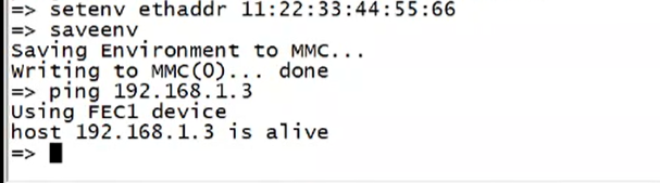 7,设置enther,此时便可ping通,但是无法从Ubuntu ping通,因为uboot中的ping是单向的