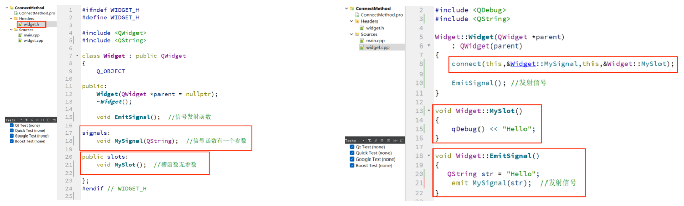 - 信号需要定义在signals关键字中3.3 信号和槽带有参数