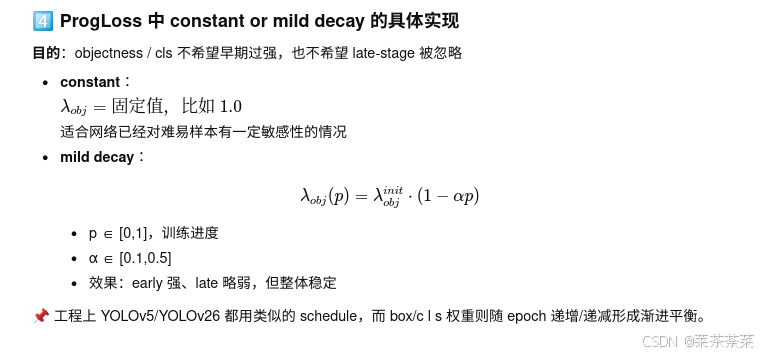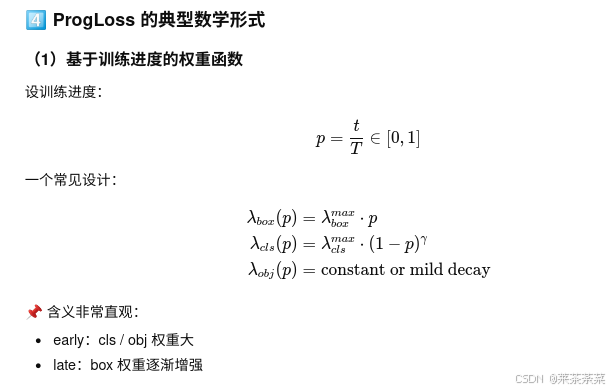 | 阶段 | Loss 特性 | 为什么噪声/瓶颈 | ProgLoss 处理 |