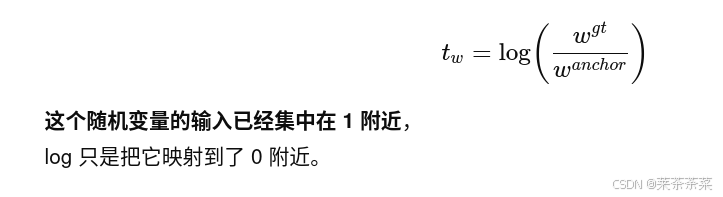 首先为什么设计时要用:tw=log(bw/anchorw)t_w = log(b_w/anchor_w)tw=log(bw/anchorw),而不是bw=anchorw+twb_w = anchor_w + t_wbw=anchorw+tw 或者 bw=anchorw∗twb_w = anchor_w * t_wbw=anchorw∗tw?