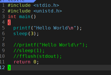 要是我们把\n去掉了光标就还会在Hello World 那一行后面紧跟着就是命令行