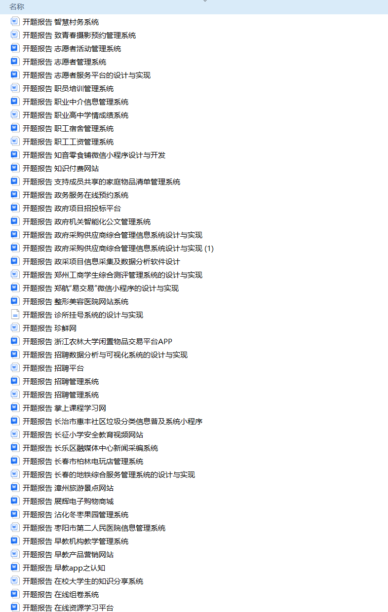 以上是H同学的毕业设计答辩过程,如果你现在还没有参加答辩,还是开题阶段,已经选好了题目不知道怎么写开题报告,可以下面找找有没有自己符合自己题目的开题报告内容,列表中的开题报告都是往届真实的开题报告可参考