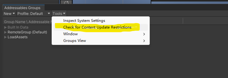 注意:这里会将Asset有改变的,并且分组选项是Cannot Change Post Release的包(将要增量更新的包),选择出来,然后点击右下角的apply change,就会有一个新的分组ContentUpdate出现,这个分组的包将会打在Remote,然后放在服务器,就能更新原来不论在Local,还是Remote的Cannot Change包。