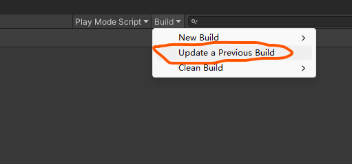 选择Build-Clean Build,把旧的本地资源包清除,再把ServerData的服务器资源包清除,再选中Update a Previous Build,同样要选择之前打包生成的.bin文件,这时候就打成了新的AA包。