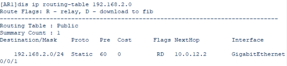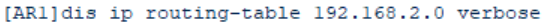 - 查看通往192.168.2.0的路由表,AR3这一条路由条目隐藏了