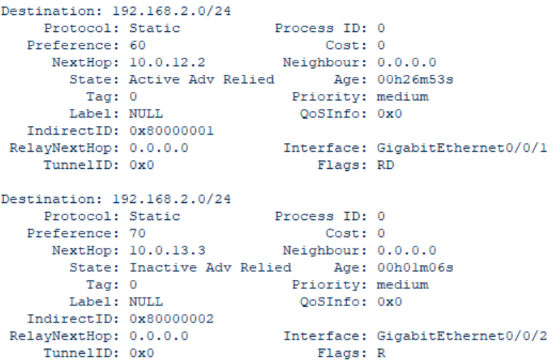 - 静态路由支持配置时手动指定优先级,可以通过配置目的地址/掩码相同、优先级不同(优先级越小越优先)、下一跳不同的静态路由,实现转发路径的备份。