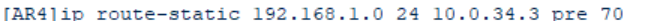 - 配置优先级,静态路由默认优先级60,把AR3这一条设置为浮动路由