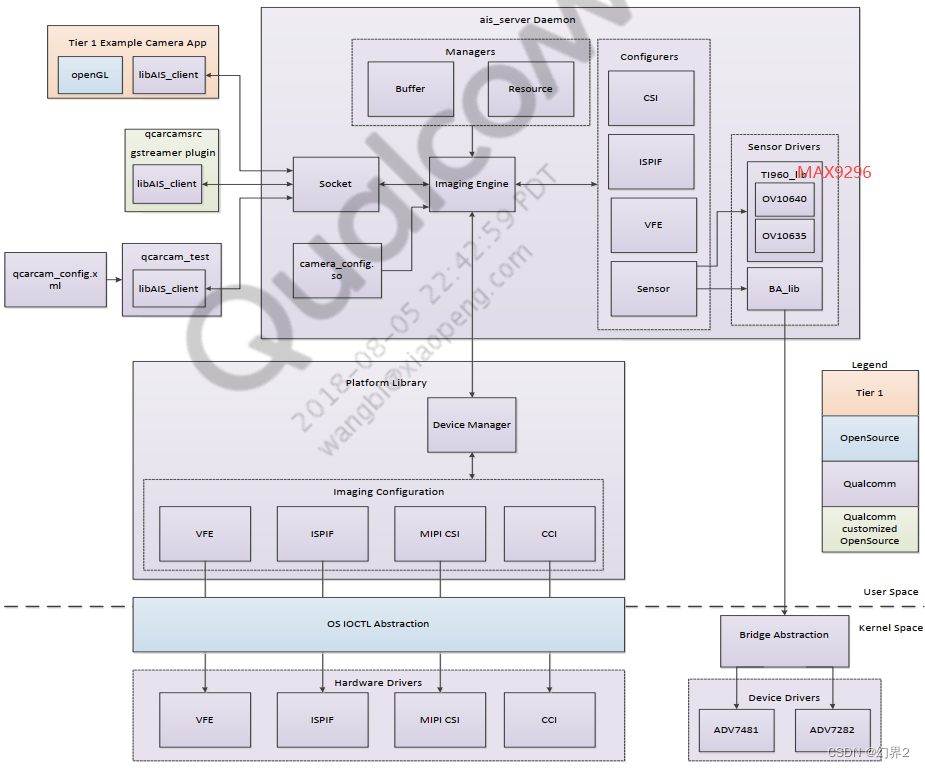 针对 Qualcomm(高通)的摄像头子系统(Camera Subsystem),特别是针对汽车(Automotive)领域的软件架构,其核心与移动端(Mobile)一脉相承,但增加了对虚拟化(Hypervisor) 、**功能安全(Safety)和多摄并发(Multi-camera concurrency)**的支持。