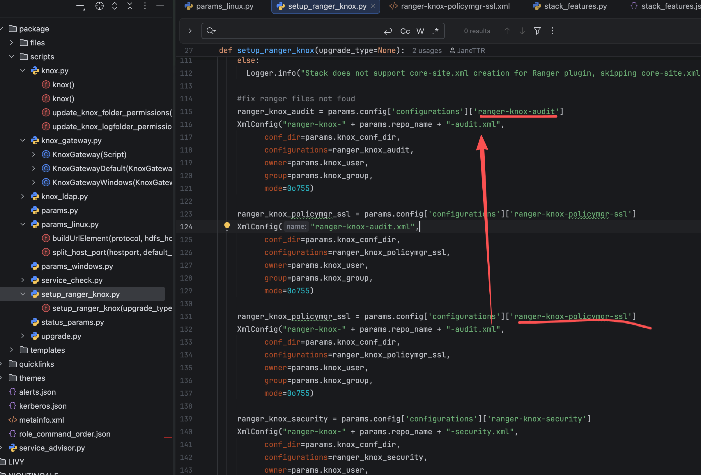 ranger-knox-policymgr-ssl.xml存在ranger-knox-<repo_name>-policymgr-ssl.xml存在- 两者内容结构一致、差异只体现在命名/引用层面(按实现而定)