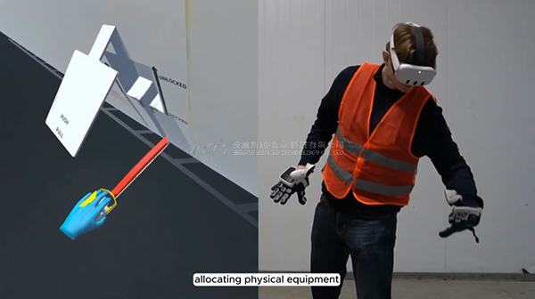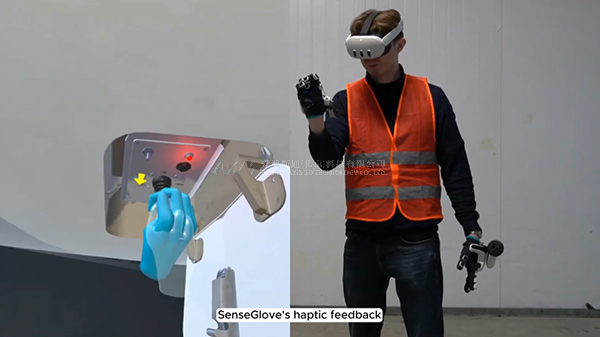 在虚拟环境中,货物门把手、锁定机制和开关动作被精确地复制。SenseGlove的触觉反馈使用户能够感受到如转动、拉和推把手等真实的感官。