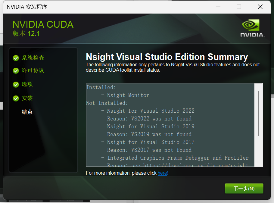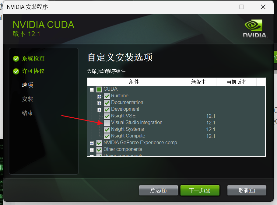 如果计算机上已经安装了与CUDA版本相兼容的Visual Studio Integration文件,或者通过其他方式(如单独安装Visual Studio的插件)已经集成了CUDA支持,那么在安装CUDA时勾选"Visual Studio Integration"可能会导致冲突或重复安装,进而引发问题。