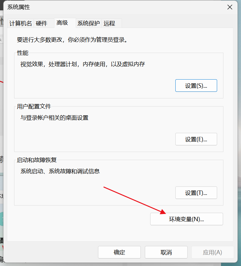 右击此电脑,打开属性,找到高级系统设置,打开并点击环境变量即可