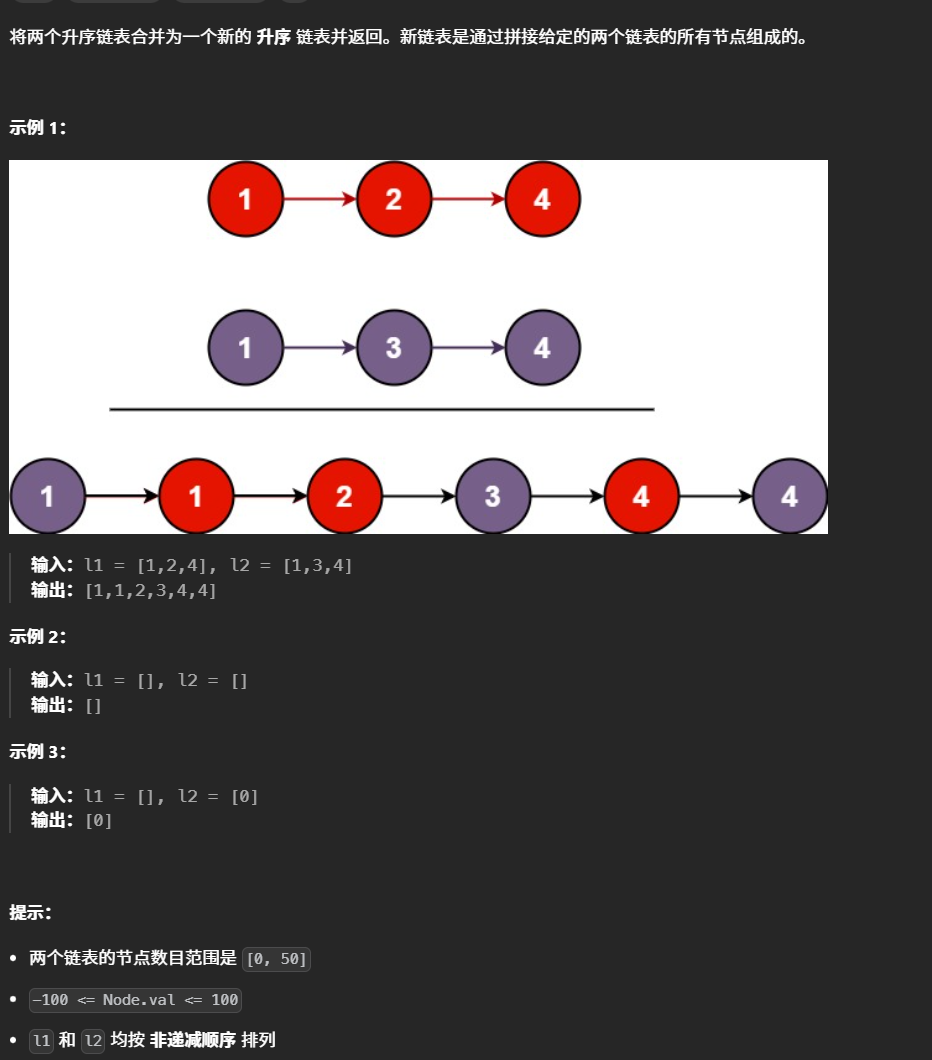 一、合并两个有序链表