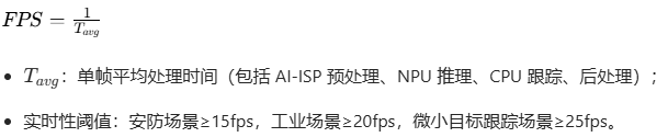 - 核心评估指标:mAPtiny≥18%、MOTA≥75%、FPS≥25fps、NPU 利用率≥80%,是系统性能达标标准。
