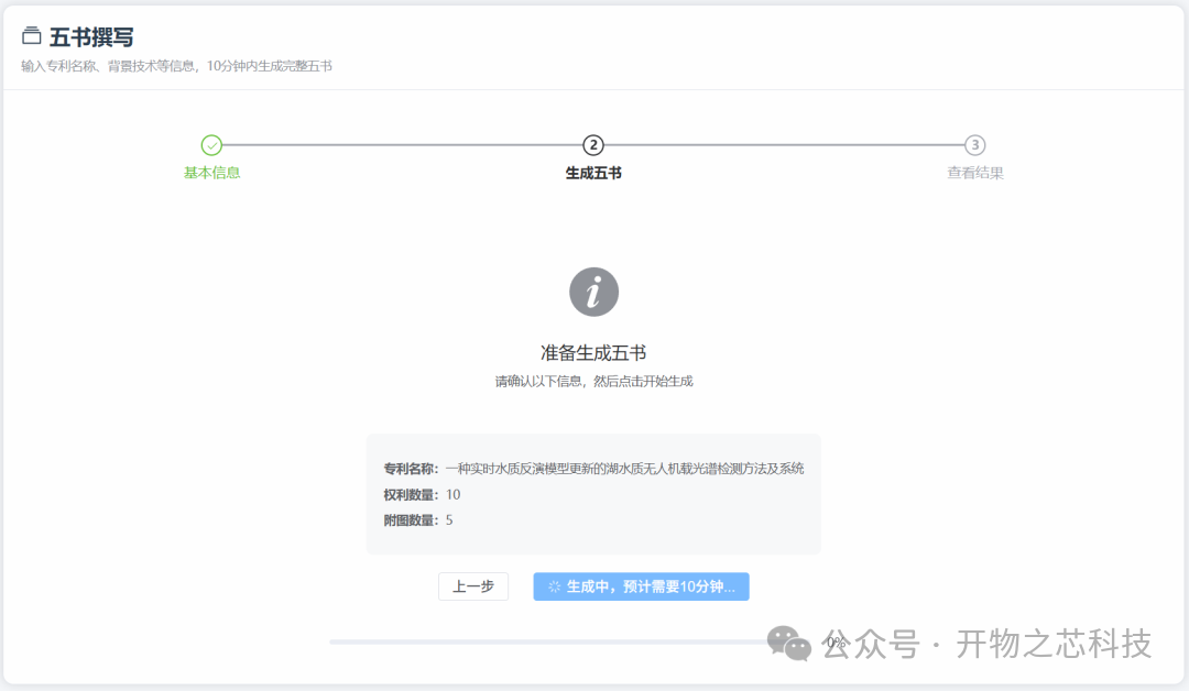 10分钟生成完整五书文档,包括权利要求书、说明书、摘要等全部内容;