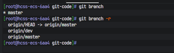开发者1在本地仓库目录下执行git branch -r命令。这个命令的-r参数代表remote,其作用是列出所有本地已知的远程跟踪分支。终端的输出结果仅有一行origin/master,这个结果明确无误地证实了:在开发者1的本地Git元数据中,尚未包含任何关于远程dev分支的信息。