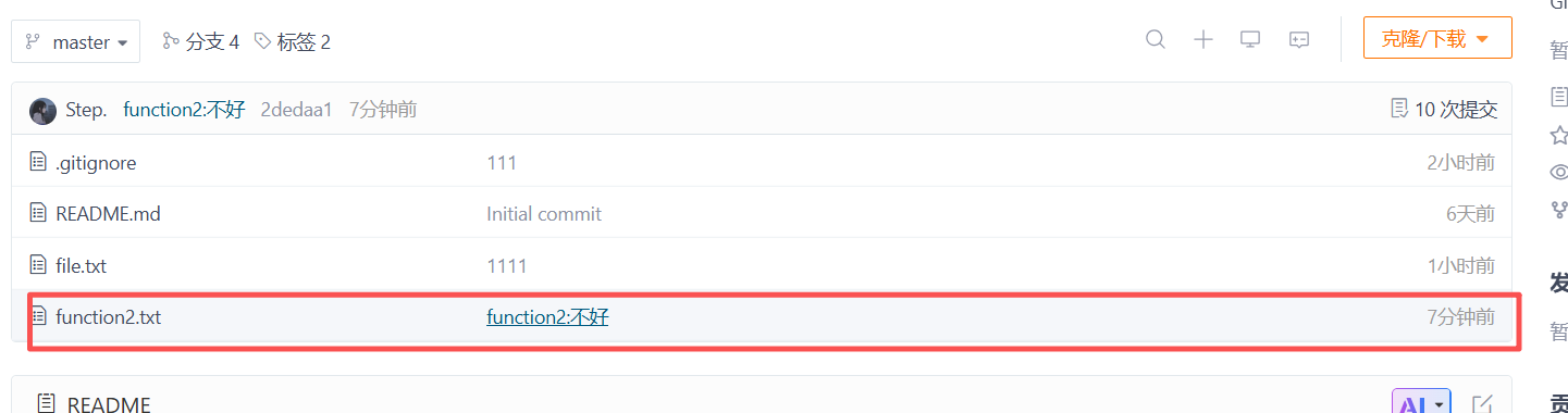 本次实践目标 :在master分支的基础上,最终新增function1.txt和function2.txt两个文件。