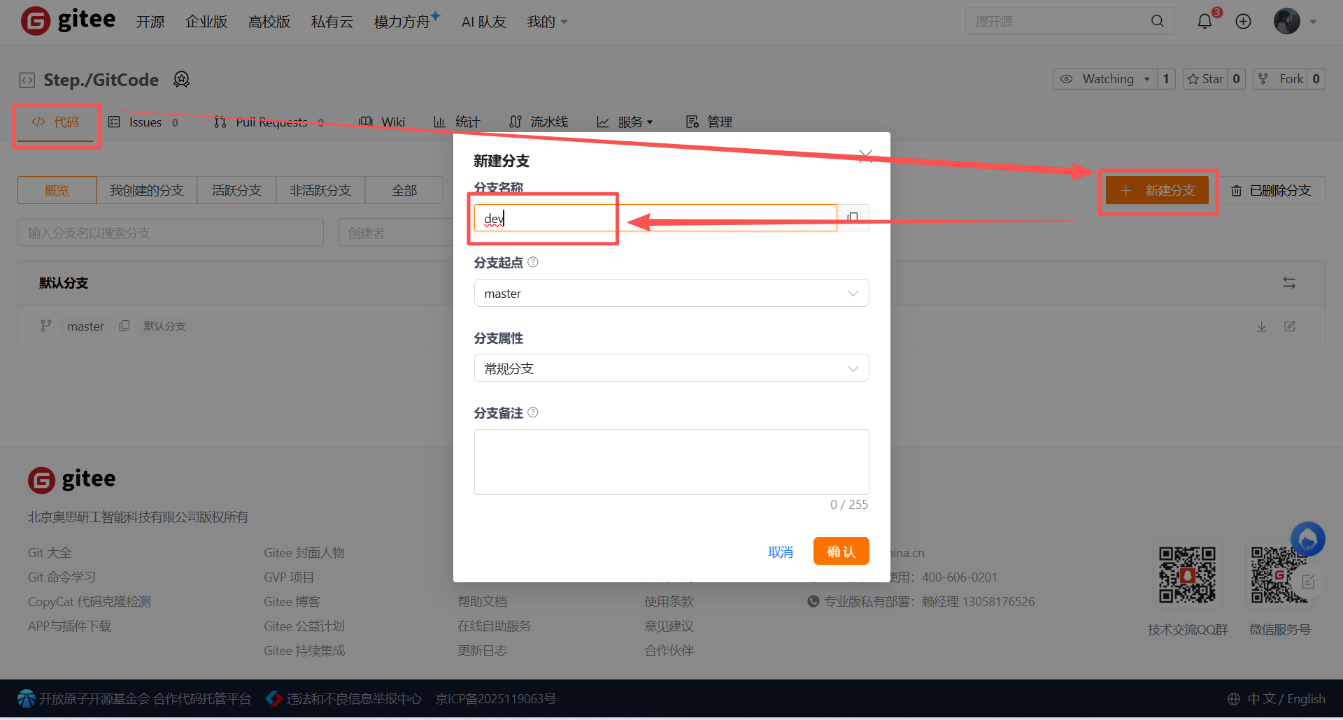 在Gitee这样的代码托管平台上,创建分支的操作通常通过其网页界面完成。在分支管理页面,选择一个基础分支(通常是master或main),在输入框中填入新的分支名称dev,然后点击"创建"按钮。操作完成后,一个名为dev的新分支便成功地在远程仓库中被创建出来,它包含了master分支在创建时间点的所有代码历史。