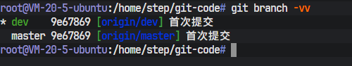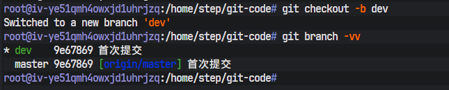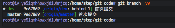 -vv参数为git branch命令提供了更详尽的输出。在dev分支对应的那一行,[origin/dev: ahead 1]这条信息至关重要。它精确地描述了本地dev分支与它所跟踪的远程origin/dev分支之间的关系: