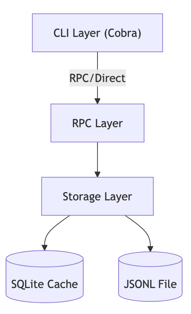 spf13/cobra构建,负责命令解析和用户交互。 它不直接操作数据,而是优先通过 RPC 与守护进程通信,失败时才降级到直接数据库访问。 -