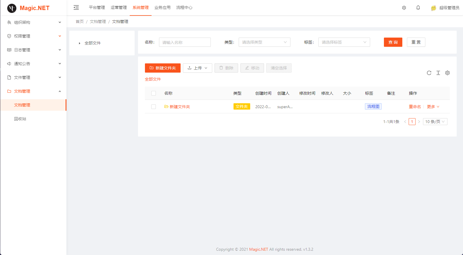文件管理:文件的上传、下载、查看等操作,文件可使用本地存储、阿里云 OSS、腾讯 COS 接入,支持拓展。