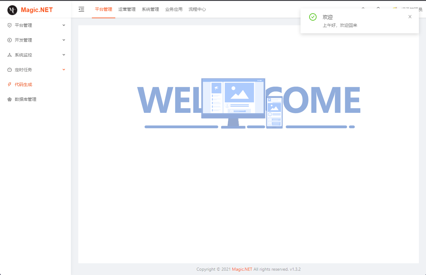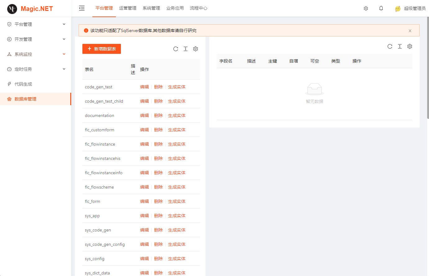 Magic.NET 是一个基于 .NET 6、7 实现的通用权限管理平台(RBAC模式),基于 Apache-2.0 协议开源。整合最新技术高效快速开发,前后端分离模式,开箱即用,模块化架构设计,层次清晰。前端基于小诺Vue(antd)框架,整体 RBAC 基础数据结构+API接口风格采用小诺vue版本模式。