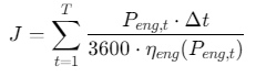 其中, η e n g ( P e n g , t ) η_{eng}(P_{eng,t}) ηeng(Peng,t)为发动机效率(随功率变化,需提前建模)。