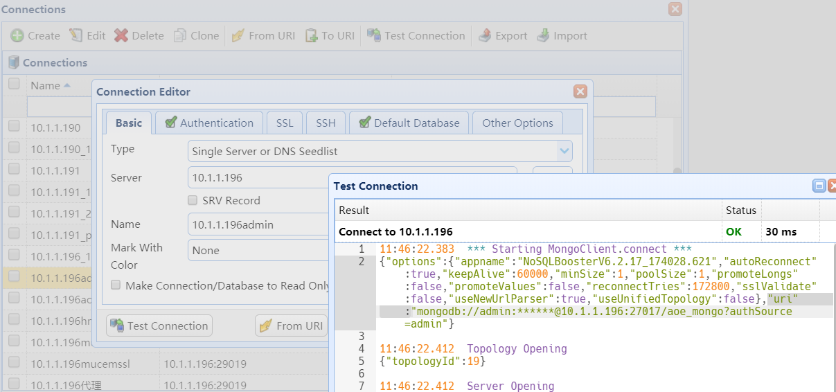 使用 MongoDB 客户端(如 NoSQLBooster、Navicat、Robo3T)连接,核心配置需与原认证一致,配置项如下: