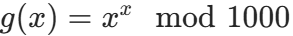 - x 是正整数,g(x)=xxmod1000(即xx除以 1000 的余数)。