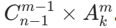 问题描述:有 n 个相同元素,分成 m 组,每组至少 1 个元素,再将这 m 组分配给 k 个不同盒子(k≥m),每个盒子最多分 1 组,求方案数。