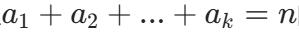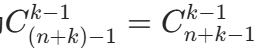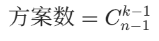 - 因此,方案数就是从n−1个空隙中选k−1个的组合数,即: