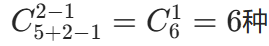 - 第一步:分成 2 组:C6−12−1=C51=5种。