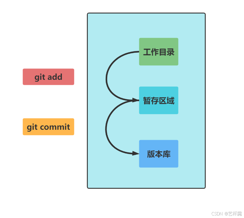 | Untracked | 文件在文件夹中,但未加入Git库 | git add → Staged |