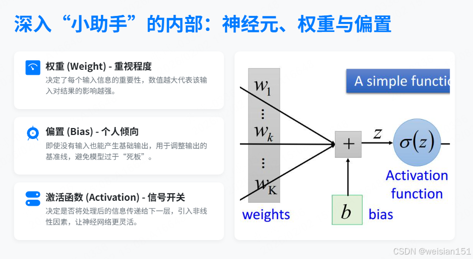 🔍 深入"小助手"的内部:神经元、权重与偏置