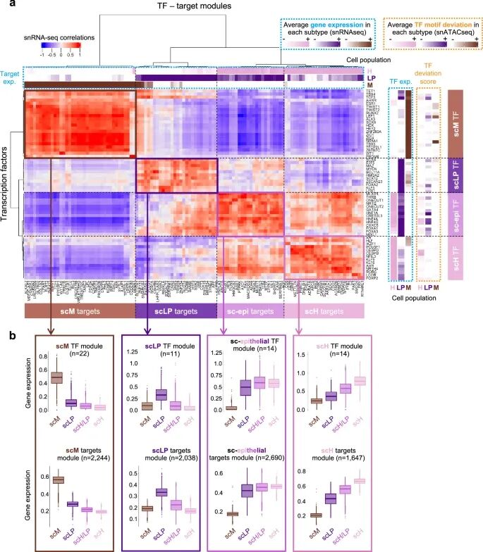 图5:研究人员通过整合多组学数据构建了四个基因调控网络模块,明确了驱动各分化状态的核心转录因子。
