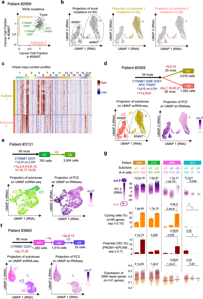 图1:多组学分析成功区分了HB细胞及其微环境,并验证了11p15拷贝数改变和CTNNB1驱动突变在单细胞水平的分布。