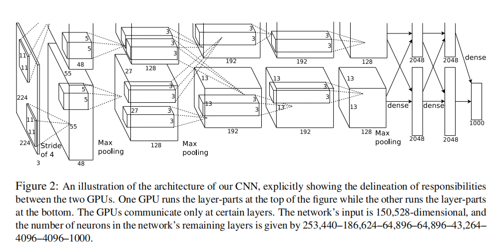 | 多GPU并行训练 | 将网络分布在两块GTX 580 GPU上 | 支持更大网络规模 |