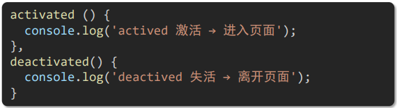 deactivated 当组件不被使用的时候触发 → 离开这个页面的时候触发