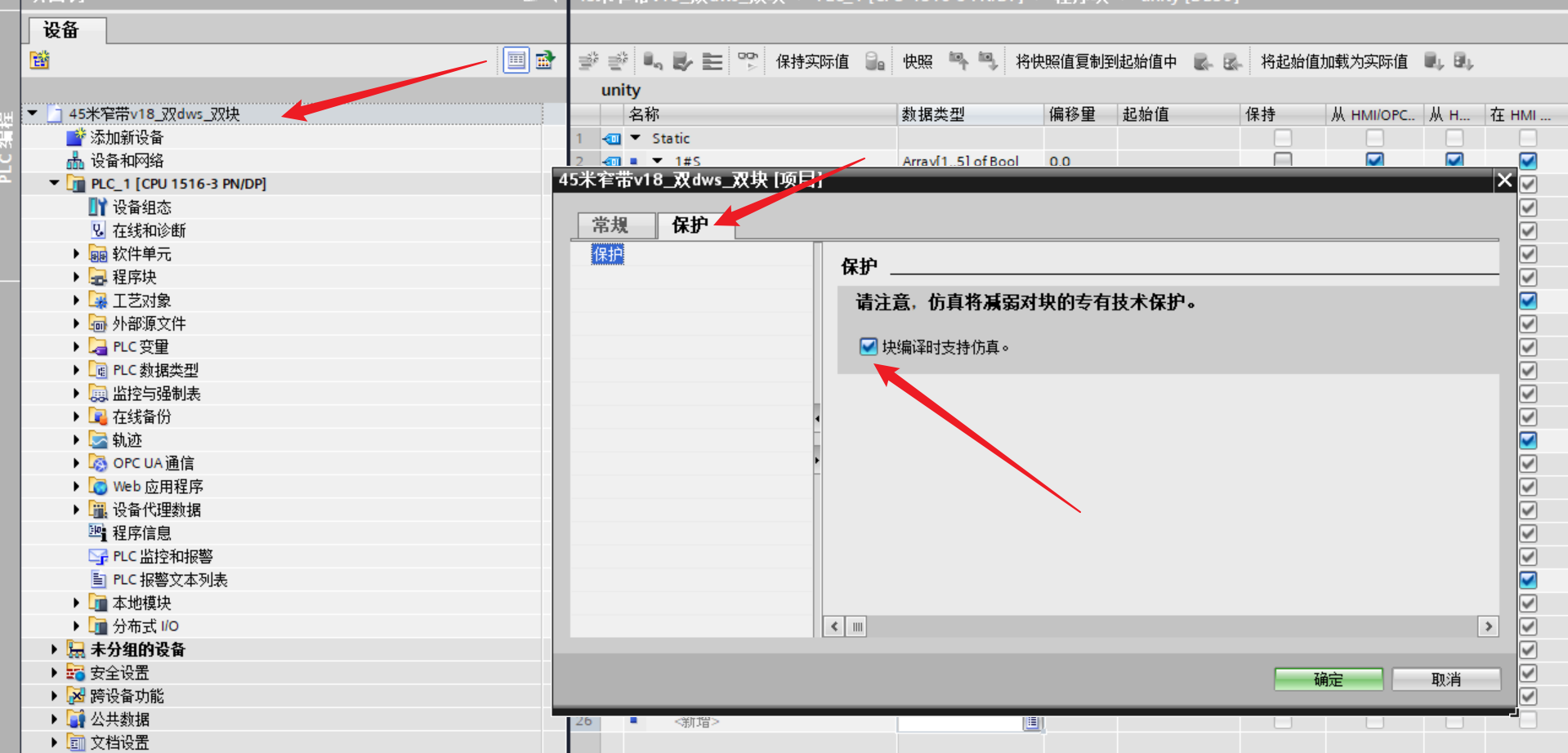 选中项目右键属性勾选保护中的块编译支持仿真。