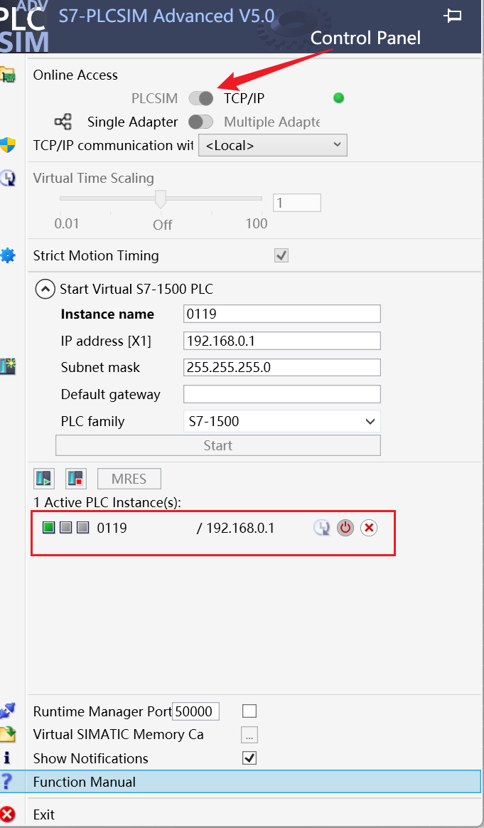 打开PLCSim advanced的tcp/ip实例,把程序下载到PLC中