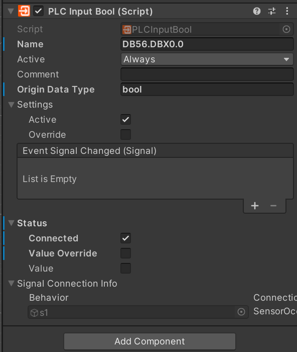 创建一个DB块用于同步unity和plc之间的数据,取消勾选优化的块访问,如图所示是需要同步的输入变量1#S,2#S和输出变量1#R,2#R,使用DB56号块。