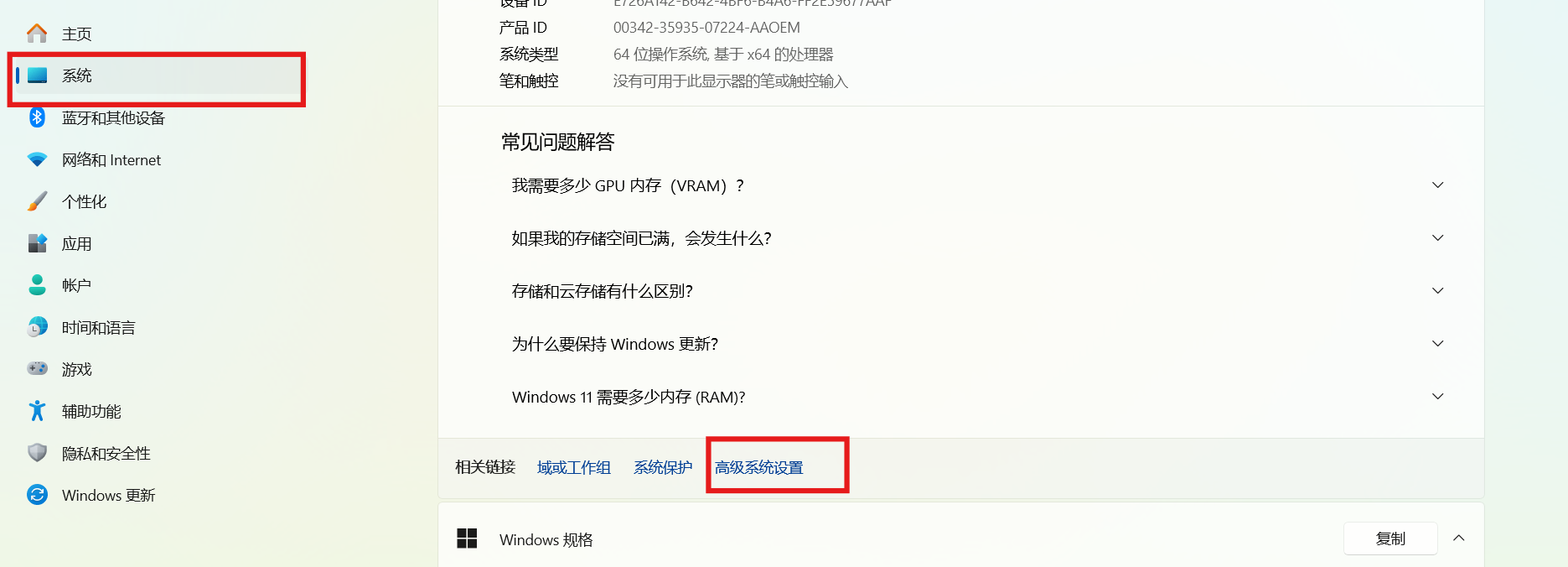 找到高级系统设置