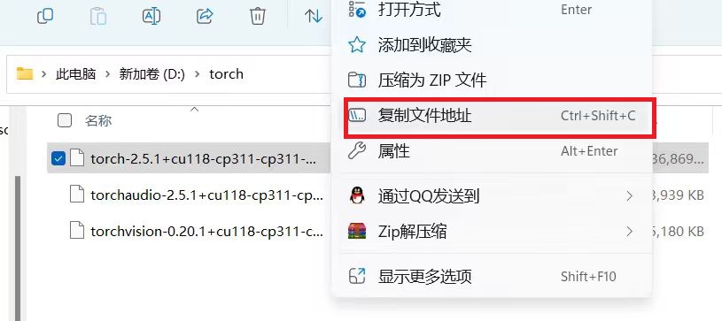 下载完成在文件夹中打开,选中右击,选择复制文件地址