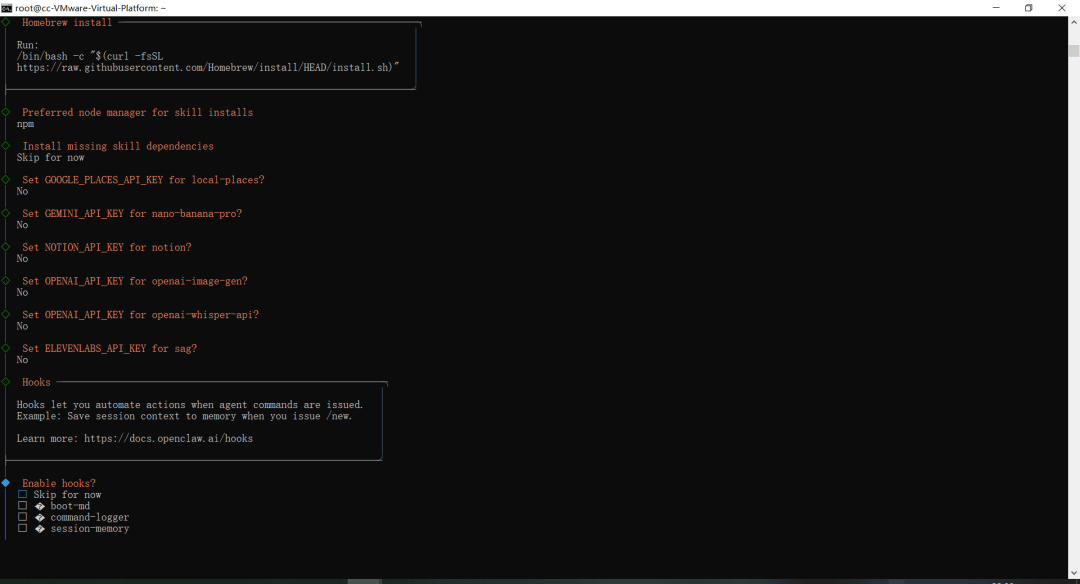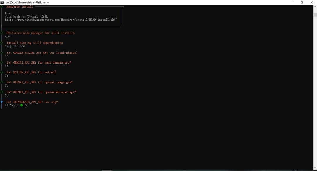 - 然后会要求你选择 Configure skills now? (recommended),选择YES即可。