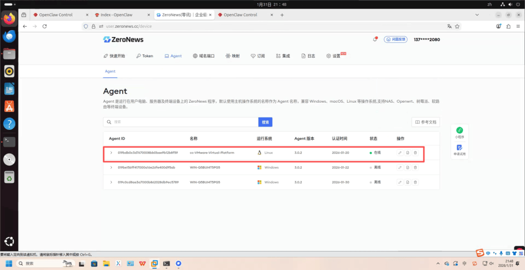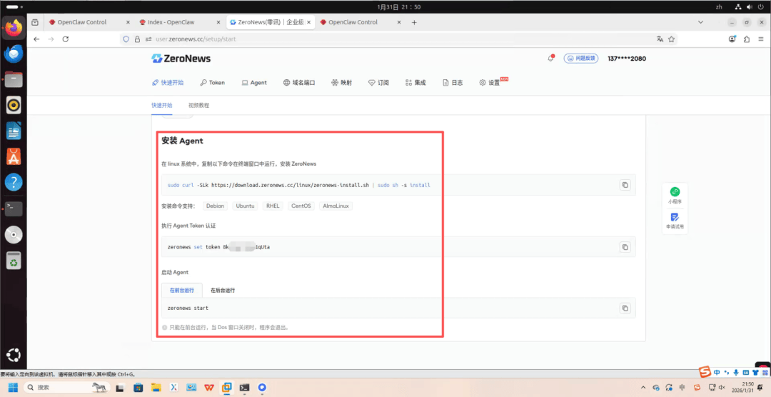 - 首先,打开 ZeroNews 网站,然后选择您的系统(小编用的是用Ubuntu,选择Linux即可),并按照对应的步骤和命令安装运行 Agent 服务。