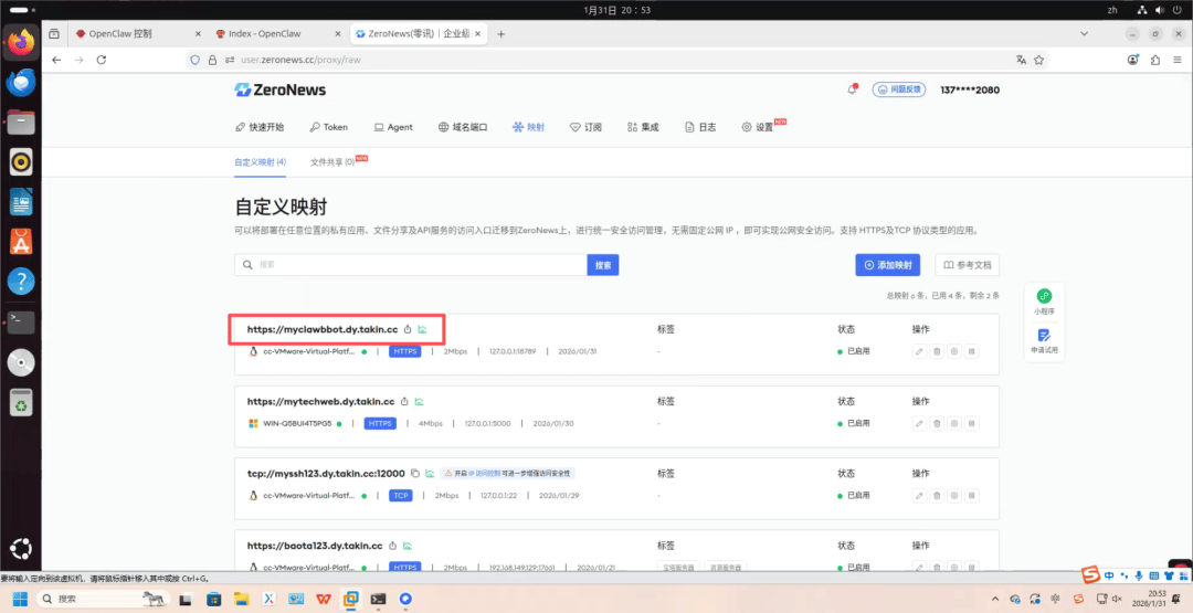 - 照上述步骤创建完成之后,我们就可以得到一条可公网访问的映射域名。