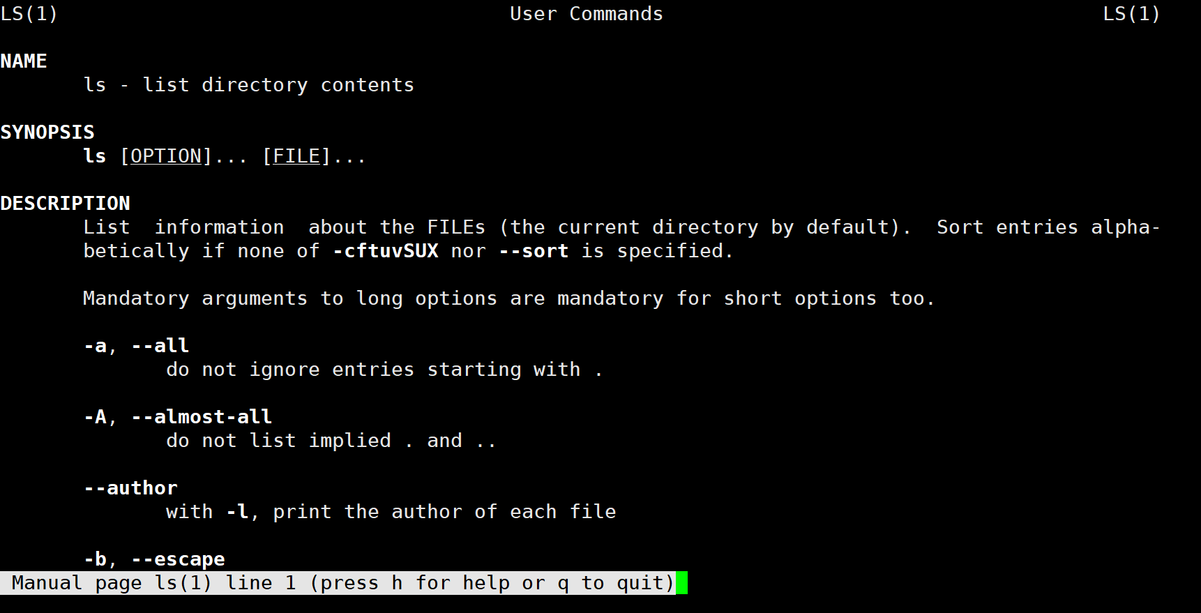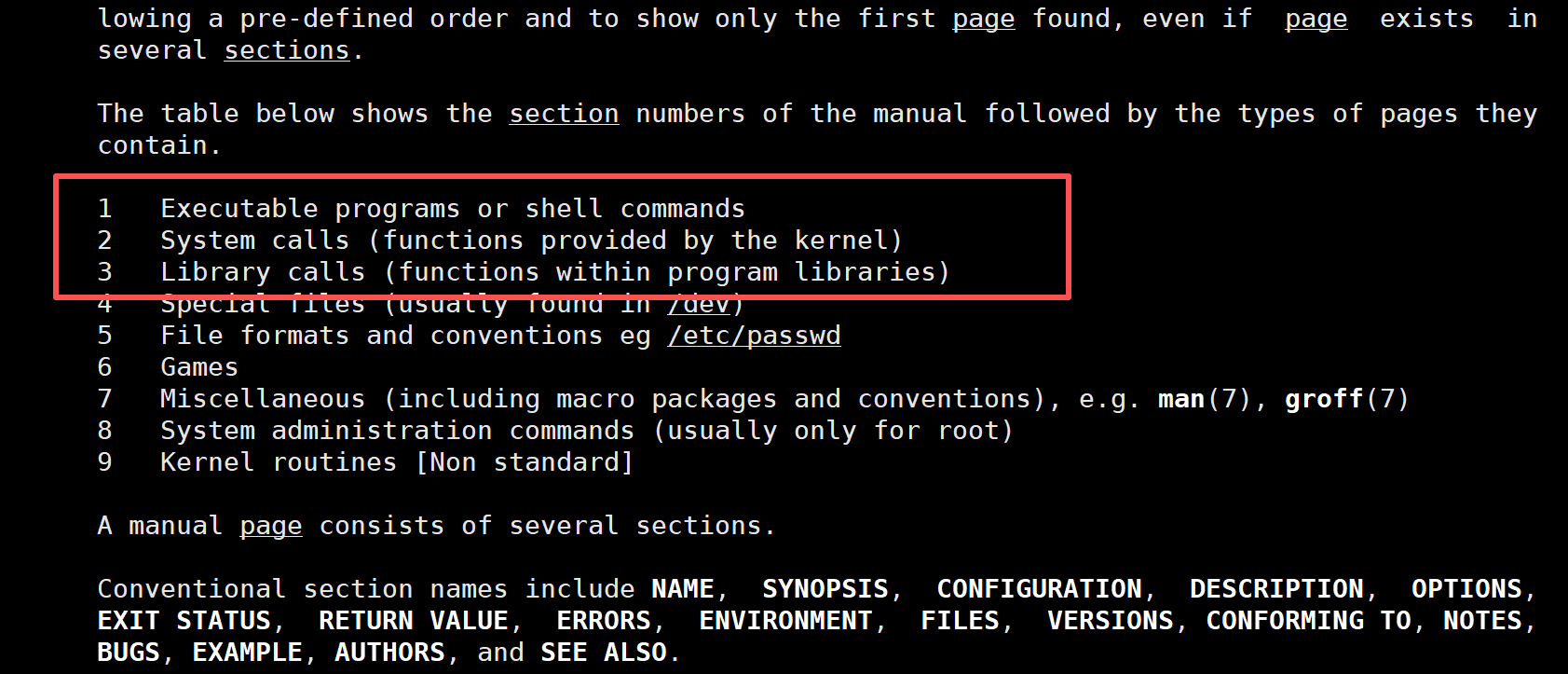 1号手册是默认手册,在使用man查询时,man后面没有跟上数字就默认从1号手册开始查询。查询可执行程序(指令就是可执行程序)或者命令行命令。
