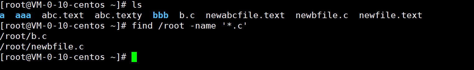 这里是在root目录下查找所有包含.c的文件或路径,*号就是查找所有,*.c就是所有包含.c的文件或目录,这里要加上引号' *.c '