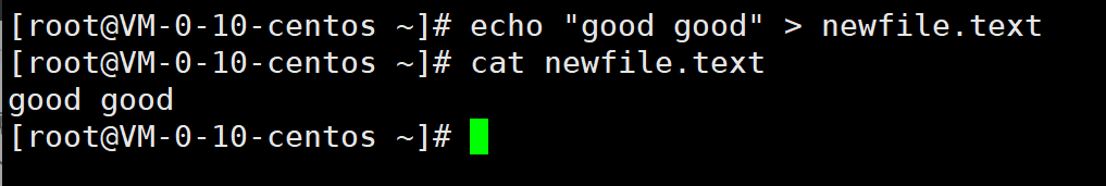 符号 > 是输出重定向。在上面的截图可以发现,echo把字符串"hello Linux"写入到了newfile.text文件中。在原先的目录里是没有这个文件的。所以若没有这个文件,就回先创建这个文件再进行写入。